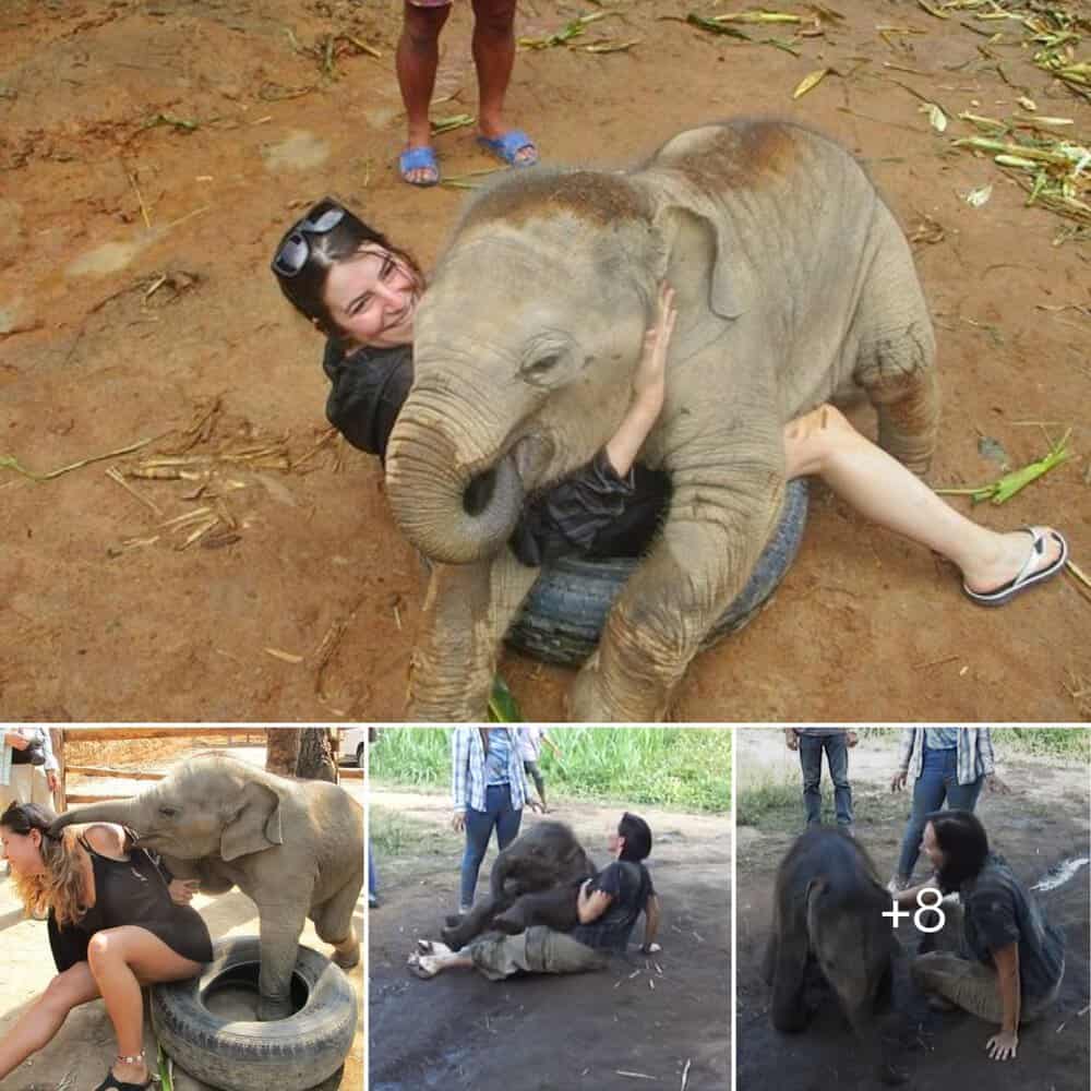 Captivating Moments: Young Elephant’s Heartwarming Hugs Spread Joy