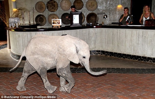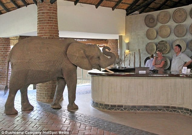 Despite the imposing 10 ft tall reception area, a regular large bull named ‘George’ manages to navigate through the lobby every year, highlighting the trust displayed by these elephants.