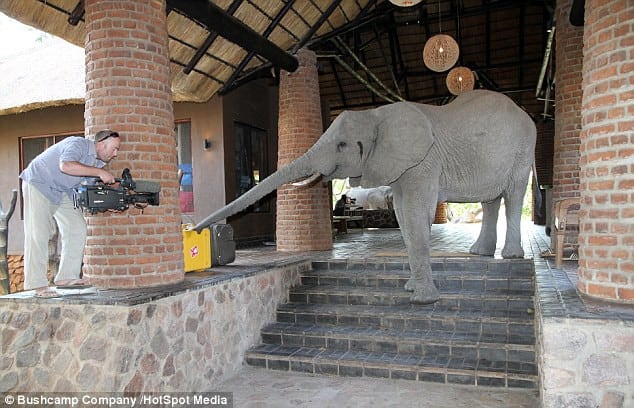 Ian describes this annual phenomenon: “From late October every year, families of elephants visit the lodge grounds to feed on the fruit of a ‘wіɩd mango’ tree, often taking a shortcut through the actual building.”
