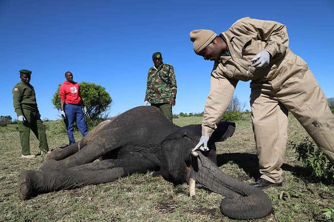 Amid the chaos, the veterinary team forcefully scared off the protective herd, allowing Dr. Ndambiri to attend to the injured elephant on the ground.