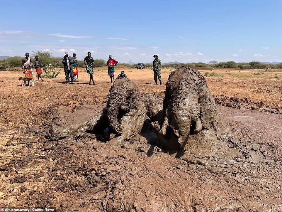 In a recent heartwarming incident in Kenya, a family of elephants faced a difficult situation when they became stuck in a muddy pit near a village.