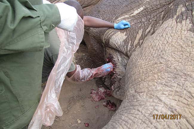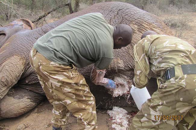 Upon reaching the scene, the vet utilized a vehicle to administer 18 milligrams of Etorphine via dart to the wounded elephant.