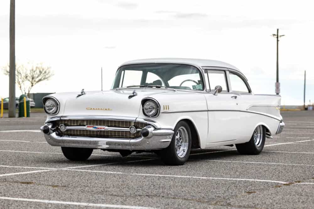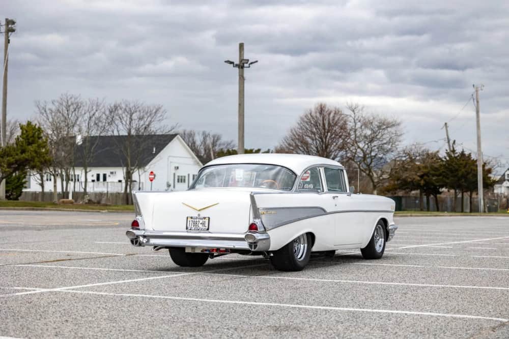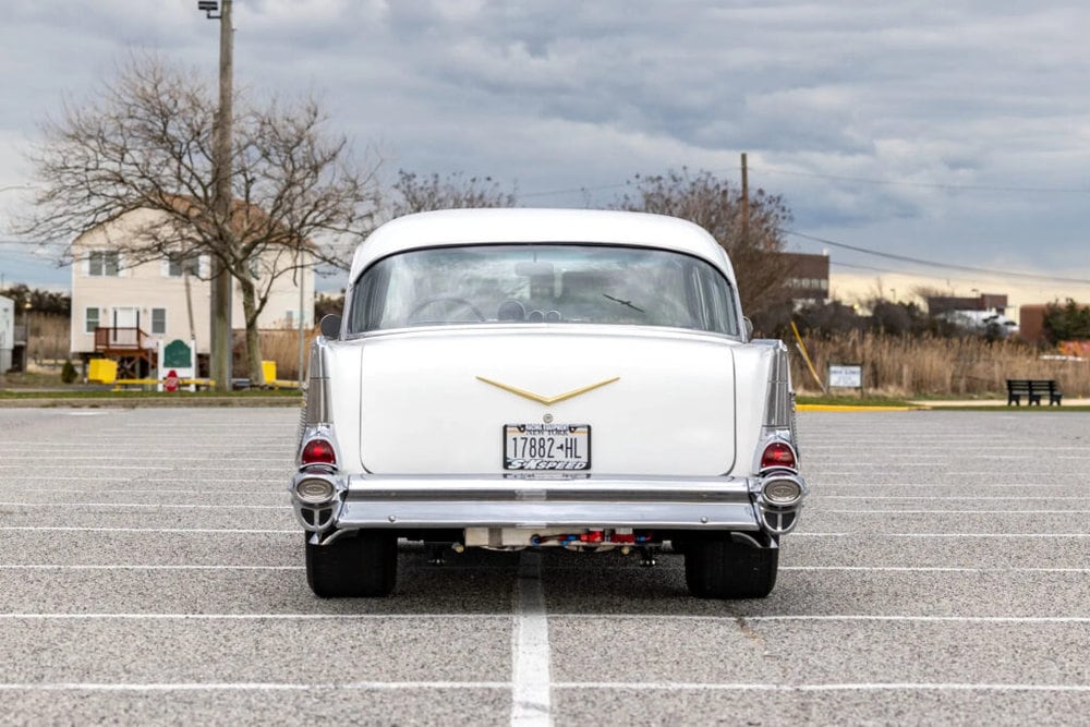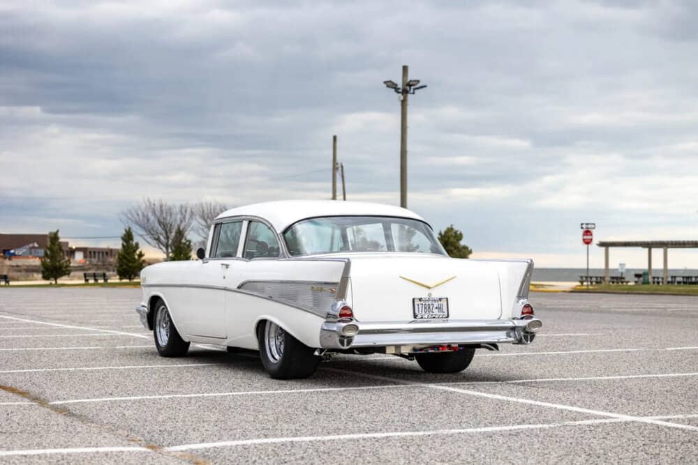 The ’57 Chevy 210’s iconic triple taillights and sweeping rear fenders evoke the nostalgia of the fabulous ’50s.
