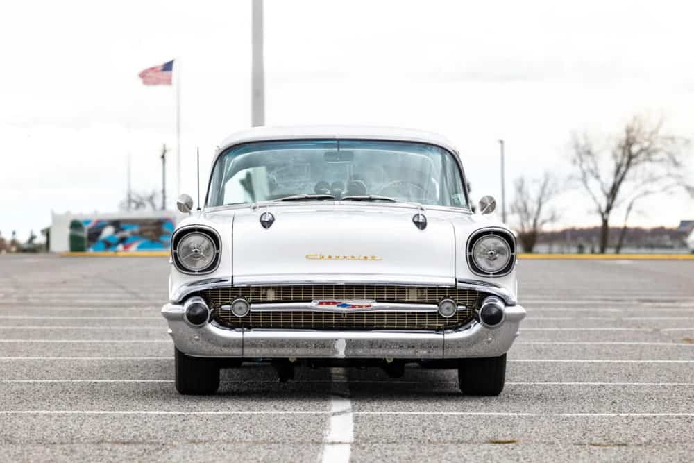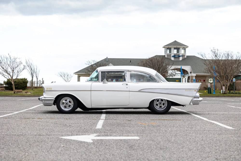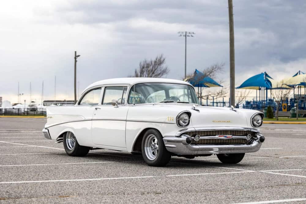 With its striking white exterior, customized upgrades, and commanding exhaust note, this ’57 Chevy 210 epitomizes old-school cool. Let’s delve deeper into what sets this classic Bowtie apart.