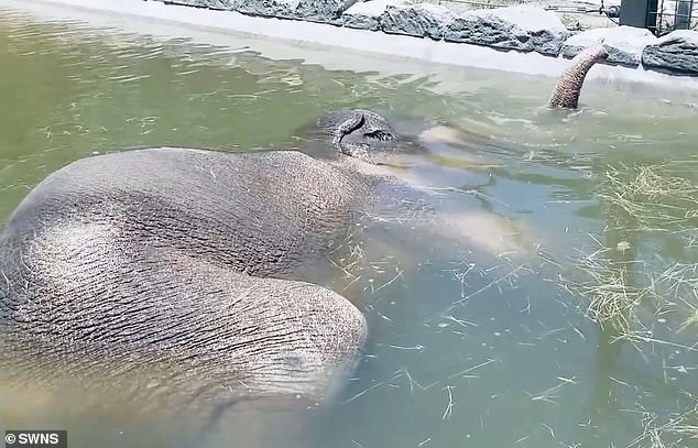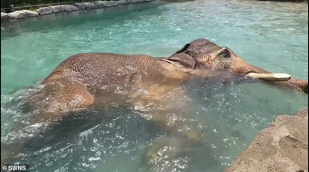 Christine Del Turco, the zoo’s elephant expert, expressed her observations, saying, “Asian elephants love water.